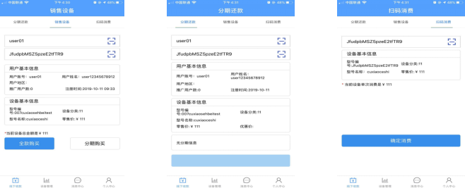 這套系統主要分為SaaS平臺管理、商家后臺管理、商家端管理App、用戶端App4大平臺,涉及平臺系統管理、地區管理、供應商/代理商管理、智能設備管理、交易管理、分期管理、用戶管理、附近設備租賃、分期付款等功能。